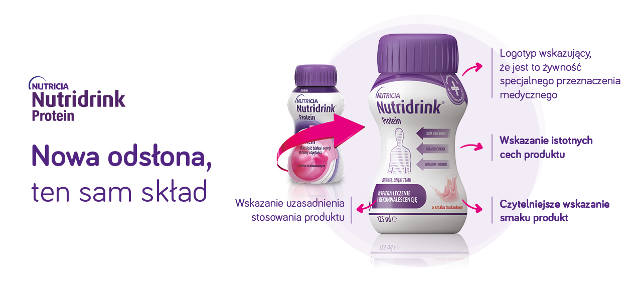 Wychodząc naprzeciw potrzebom naszych pacjentów prezentujemy nową odsłonę opakowań produktów Nutridrink i Nutridrink Protein, która w wyraźniejszy sposób pokaże najważniejsze cechy i uzasadnienie stosowania produktów ułatwiając w ten sposób dostęp do kluczowych informacji o produkcie lekarzom i tym samym również pacjentom.