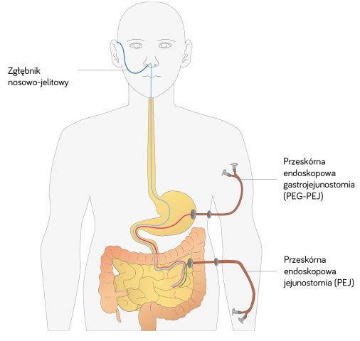 Przezskórna endoskopowa gastrostomia (PEG) lub jej odmiana PEG-jejunostomia (PEG-J) stały się techniką z wyboru do prowadzenia długoterminowego leczenia żywieniowego. Zgłębniki typu PEG-PEJ wskazane są u pacjentów z zaburzeniami motoryki górnej części przewodu pokarmowego, w tym z zaburzeniami opróżniania żołądka.
