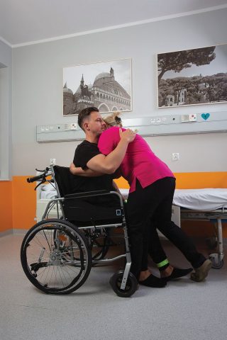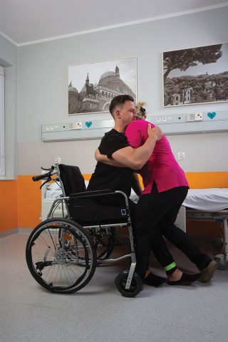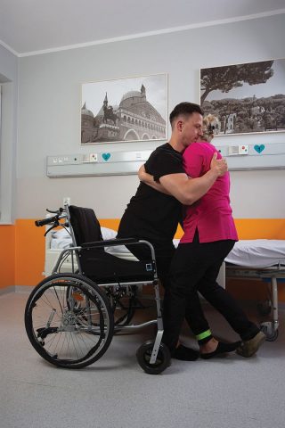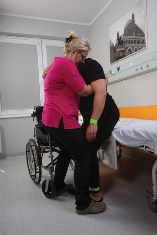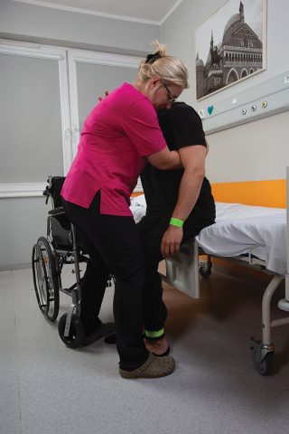 - poinformuj chorego co będziesz robił, żeby czuł się podczas przemieszczania komfortowo – strach może spowodować wzrost napięcia mięśniowego