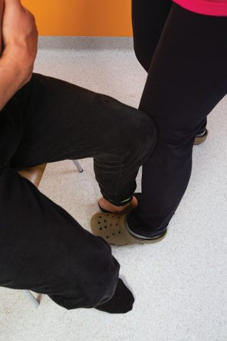 - w razie konieczności asekuruj- dociśnij swoją dłonią kolano w kierunku stopy, ryc. 2