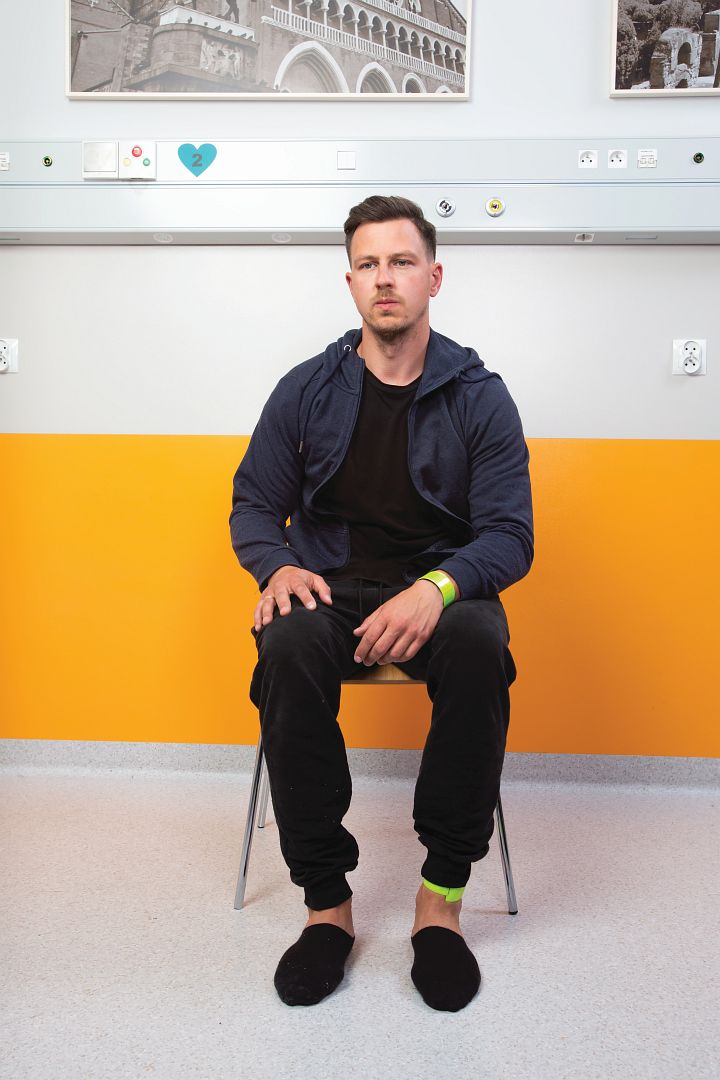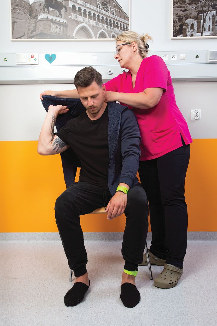Ręka oraz noga dotknięte udarem zostały oznaczone poprzez odblaskowe opaski.