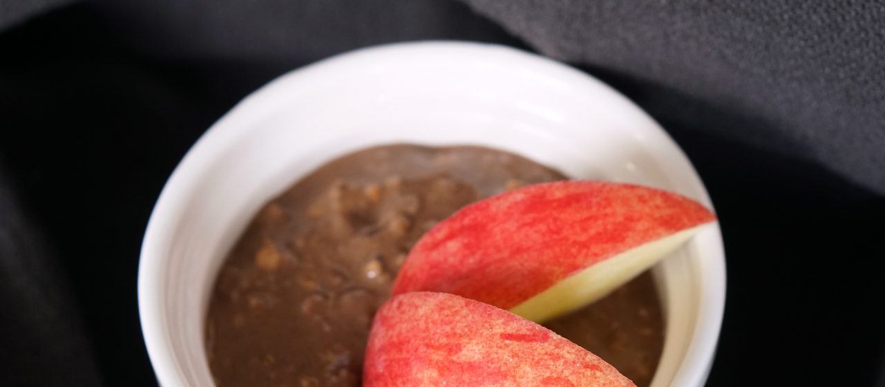 Czekoladowa owsianka to propozycja śniadaniowa, która zachwyca aromatem cynamonu, głębią czekoladowego smaku i owocową nutą musu jabłkowego. Zawarty w owsiance preparat odżywczy Nutridrnik Skin Repair o smaku czekoladowym uzupełnia posiłek o białko, argininę, cynk i inne składniki wspomagające proces gojenia ran.