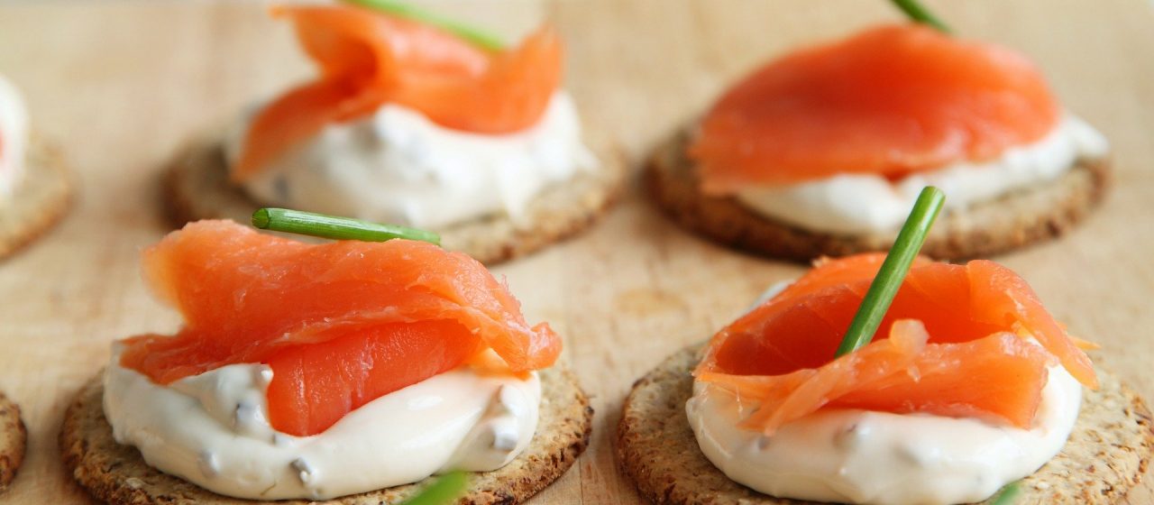 Kruche ciasteczka z wędzonym łososiem i oliwkami